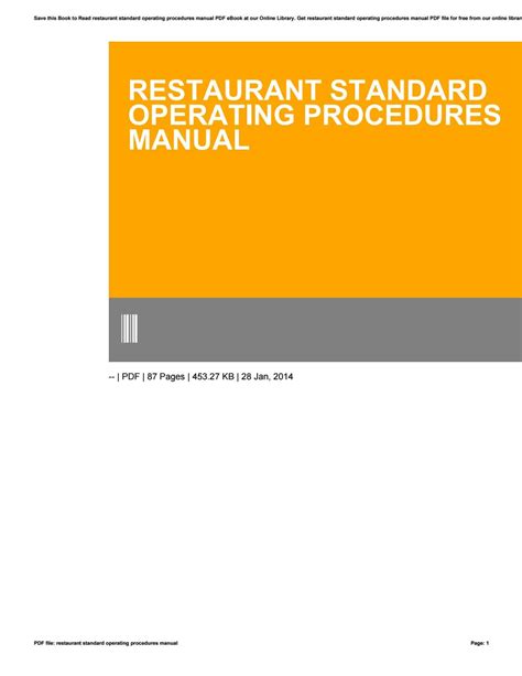 Download restaurant standard operating procedures manual mobipocket Gutenberg